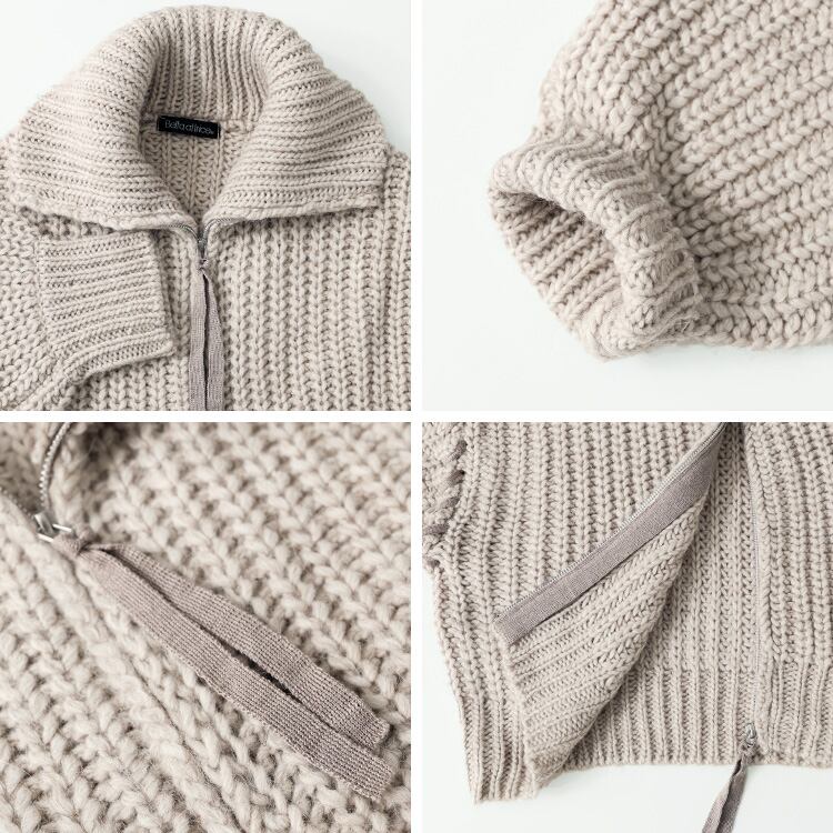 【イタリア糸】畦編みジッパーカーデ ニット カーデ 羽織り アルパカ ウール レディース 上品 可愛い 毛