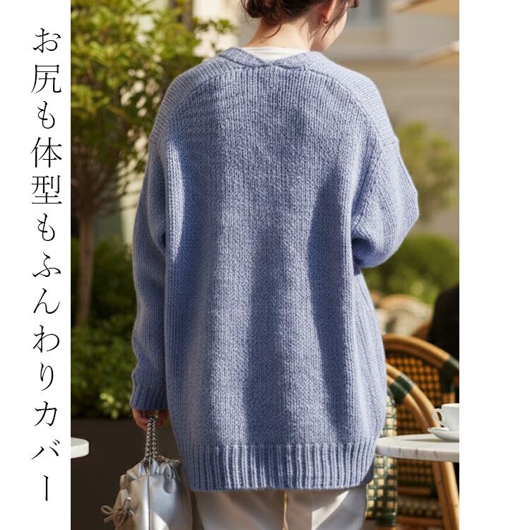 【イタリア糸】畦編みゆったり釦カーデ ニット カーデ 羽織り アルパカ ウール レディース 上品 可愛い 毛