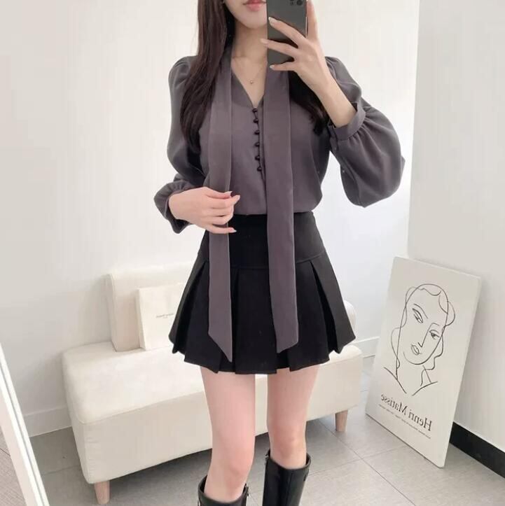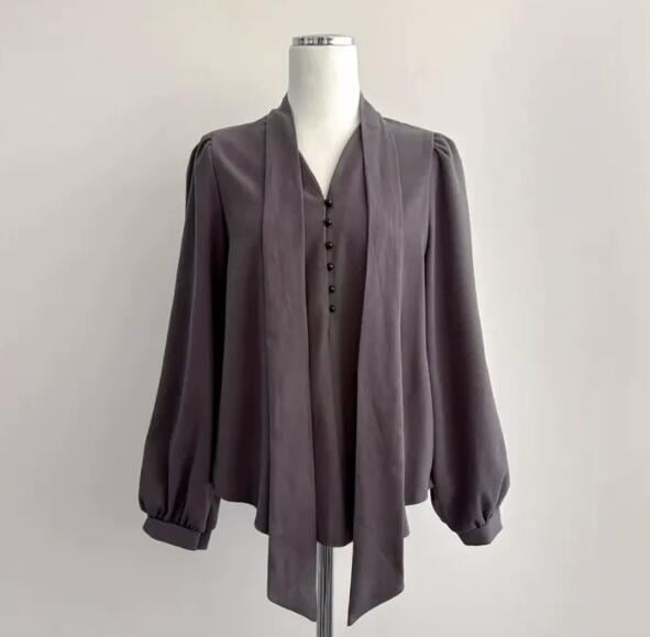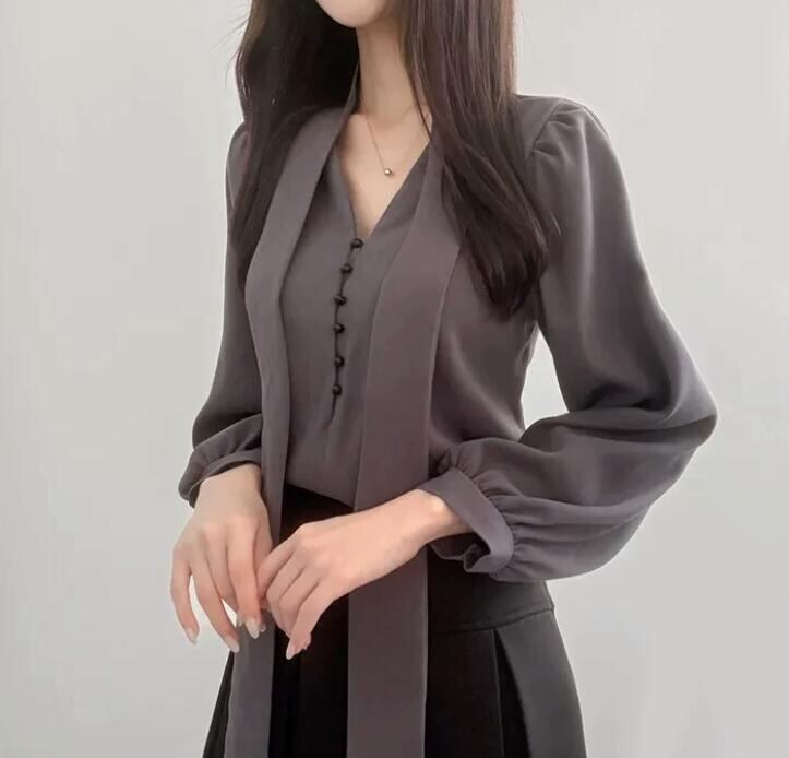 トップス レディース シャツ 長袖 Vネック 韓国風 カジュアルシャツ
