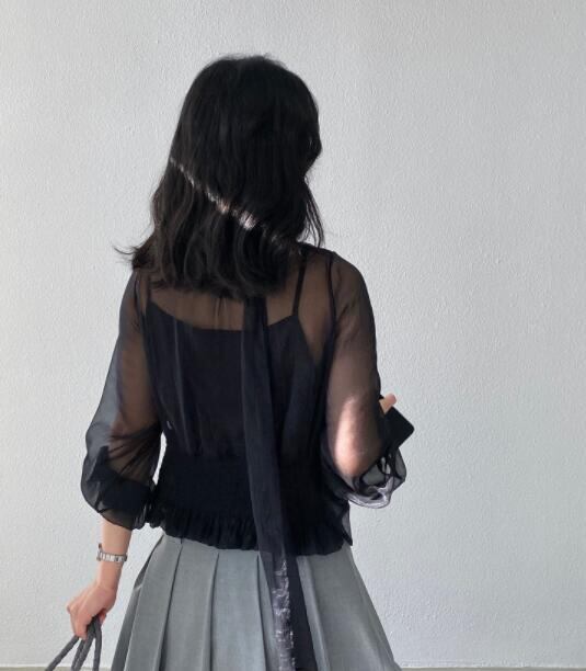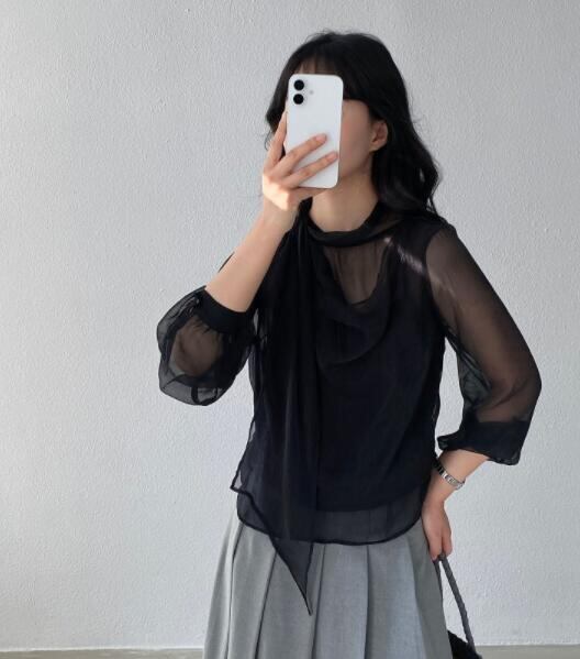 トップス レディース シャツ 長袖 カジュアルシャツ シースルー レイヤード
