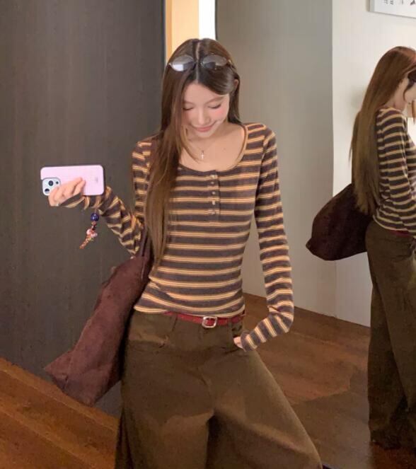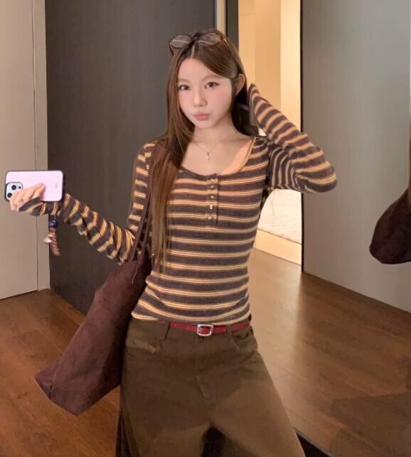 トップス Tシャツ 長袖 レディース ボーダー スリム カットソー