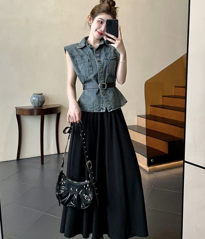 2025年夏新作 レディース服 トップス ベスト+ベルト ワンピース セットアップ カジュアル S#-XL#
