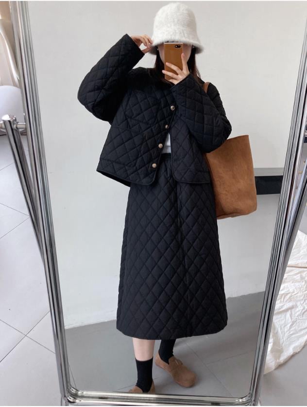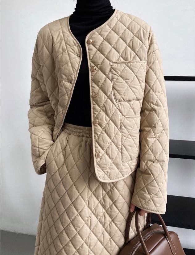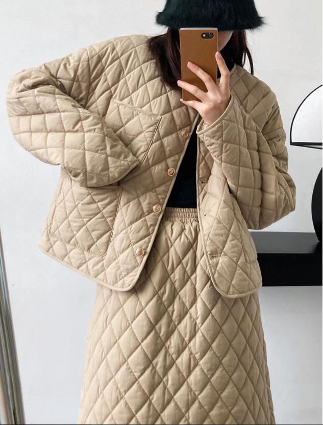 レディース服 セットアップ 秋冬新作 ジャケット スカート 中綿入り 薄手 無地 2色展開 M#-L#