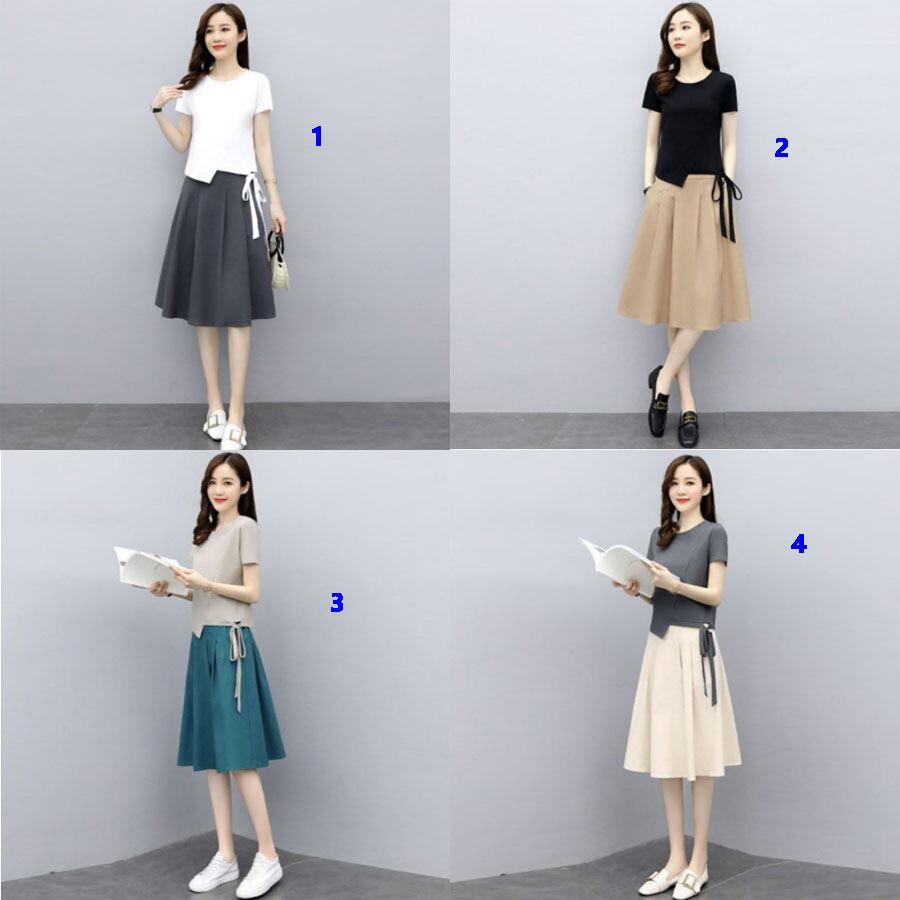 2023年夏新作 レディース服 セットアップ シャツ 半袖 スカート 着痩せ 4色展開 M#-3XL#