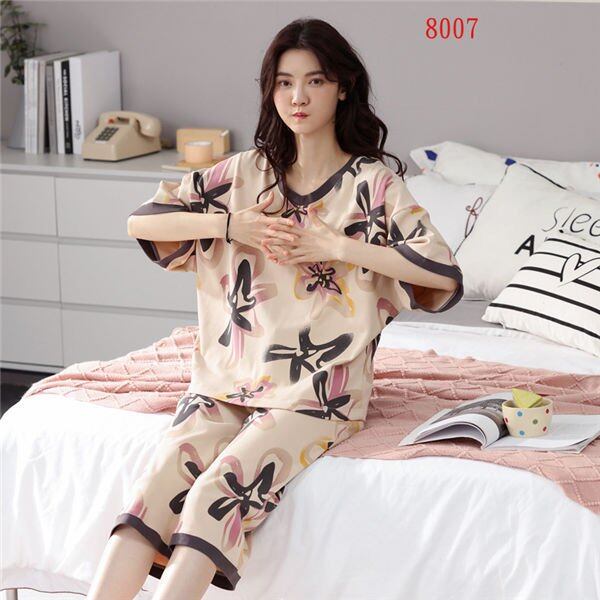 パジャマ レディース 上下セット 前開き 半袖 七分丈ズボン 綿 ルームウェア セットアップ ナイトウェア