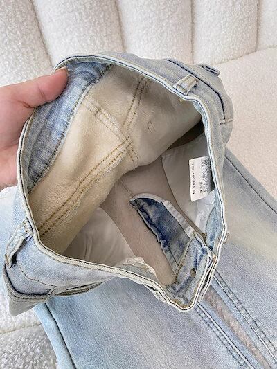 ライトカラーのフリース裏地厚手わずかにフレアなレディースジーンズ2025年冬の新作スタイルハイウエストスリミングヒップカバー伸縮性のある馬蹄形パンツ