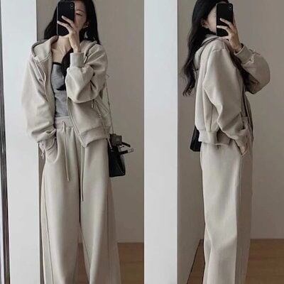 【急速出荷】 スウェット セットアップ レディース フード付き 長袖 パーカー ワイドパンツ 2点セット 綿 ジャージ 上下セット 春 秋 冬 カジュアル ロングパンツ 着痩せ 部屋着 ルームウェア