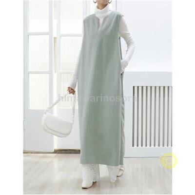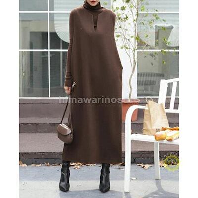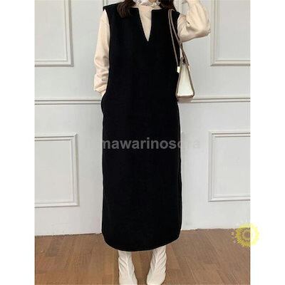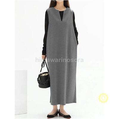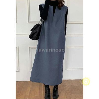 [人気製品]ジャンパースカート ノースリーブワンピース 2way ジャンスカ vネック マタニティ レディース 春秋冬 体型カバー ストレートシルエット