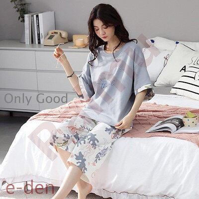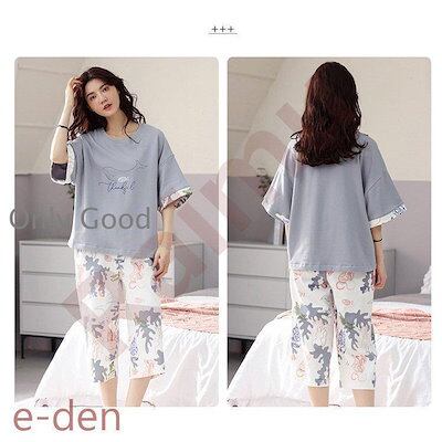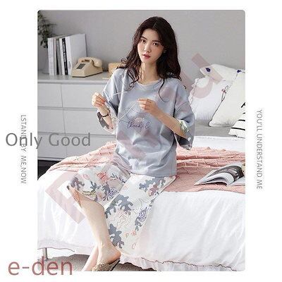 パジャマ ルームウェア レディース 春夏 半袖 パジャマ 可愛いパジャマ 寝間き大きいサイズ 女性 花柄 ルームウェア 快適 七分丈ワイドパンツ上下セット 部屋着