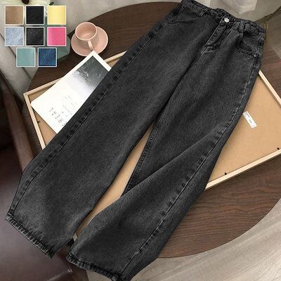 レディース デニムパンツ 着痩せ 夏 春 秋 ロング丈 カシュアル 体型カバー ゆったり 美脚 ポケット ズボン ボトムス 通勤 通学