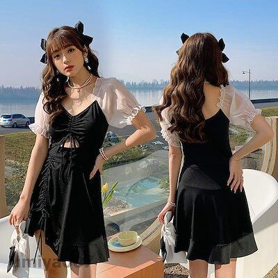 水着 レディース 体型カバー セット ママ 20代 30代 40代 ロング丈 可愛い お洒落 無地 露出 大きいサイズ お腹 お尻 太もも カバーアップ