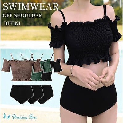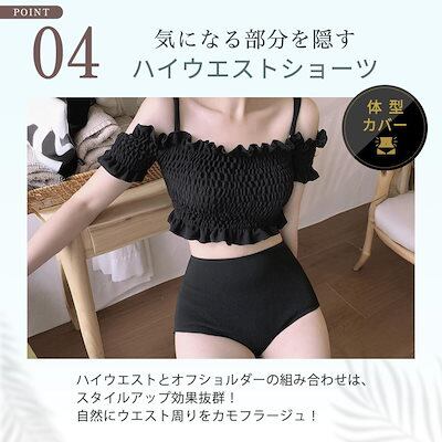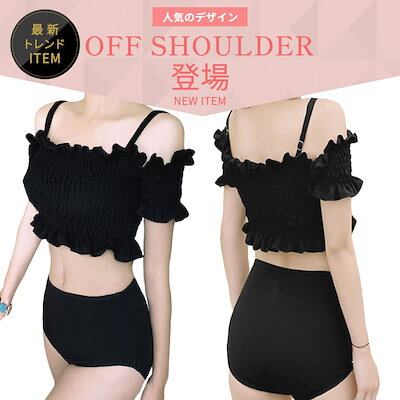 水着 タンキニ オフショル 無地 オフショルダー ワンショルダー 2WAY 3WAY 水着セット レディース 体型カバー ママ 20代 30代 40代 上下セット ビキニ