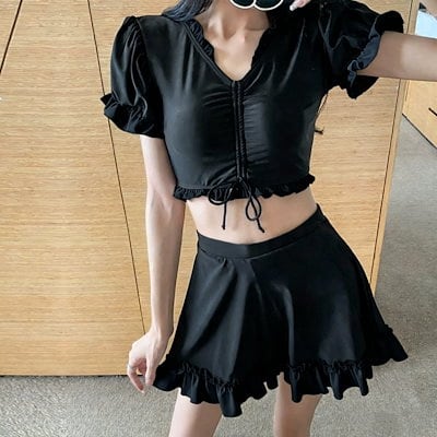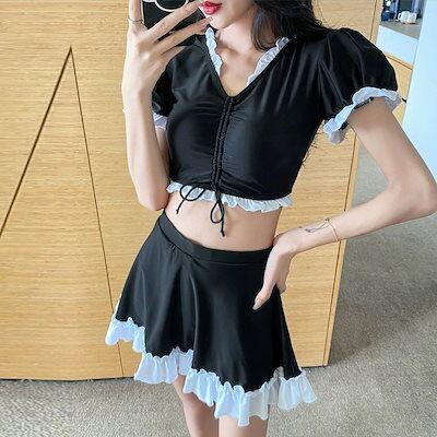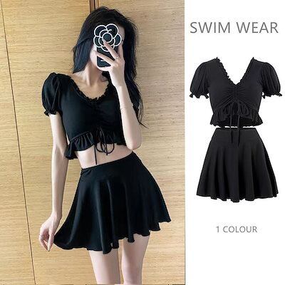 分体型 水着 レディース Vネック スクール風 清涼感 温泉 スカートタイプ カジュアル 水着