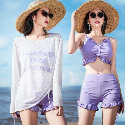 水着 レディース 分体型 ビキニ スポーツタイプ 長袖 3点セット ハイセンス 温泉 お腹カバー 水着