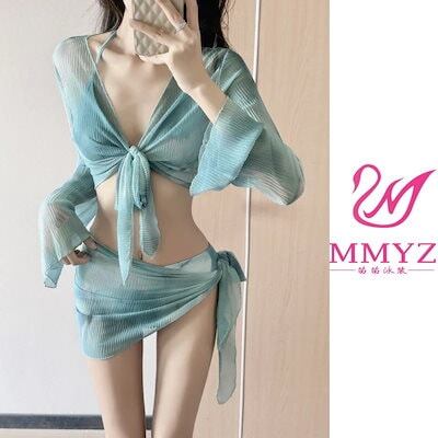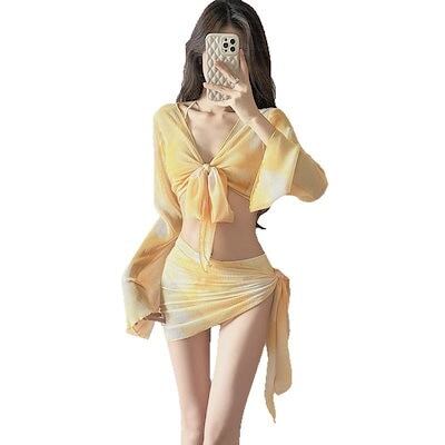 純欲 セクシー 痩せ見え 日よけ カバーアップ 辛口 ビキニ 分体型 4点セット 水着 レディース