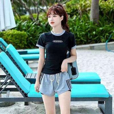 中学生セパレート水着韓国風上下セット半袖水着体型カバーレディースフィットネス高校生大学生小胸スクール水着ショートパンツ焼け防止UVカット20海水浴潜水可愛い