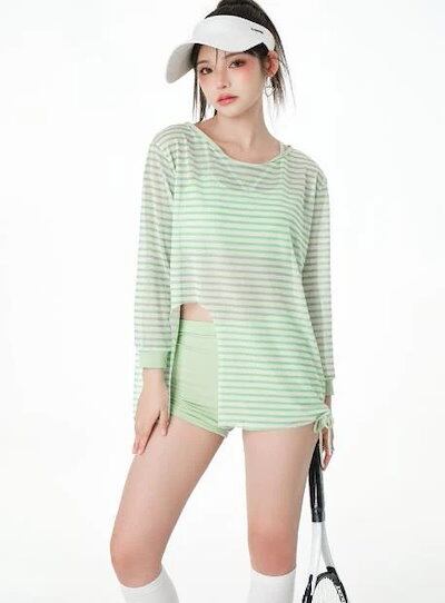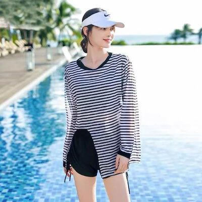 水着 レディース 体型カバー 水着 3点セット型 サロペット水着 長袖 UVカット 肩出し 小胸バンドゥ オシャレ可愛い スイムウェア 学生 ラッシュガード ビーチ