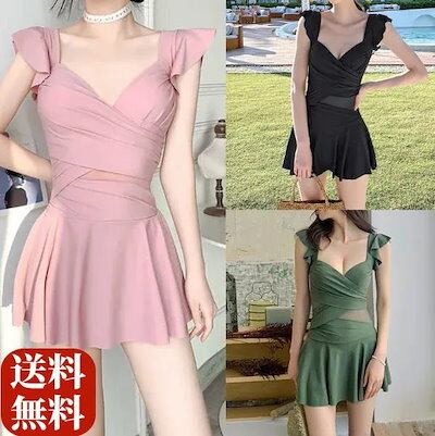 水着 レディース 体型カバー 水着ワンピース型 ビキニ UVカット体型カバー着痩せ 韓国ファッション可愛い タンキニ ラッシュガード キャミ大きいサイズ