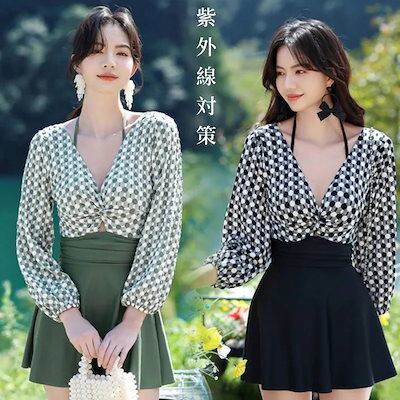 長袖 水着 レディース UVカット 紫外線対策 水着ワンピースレディースオールインワン体型カバー着痩せ 韓国ファッション ビキニ