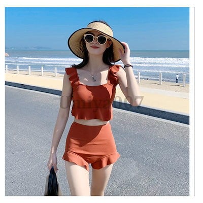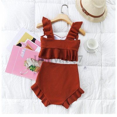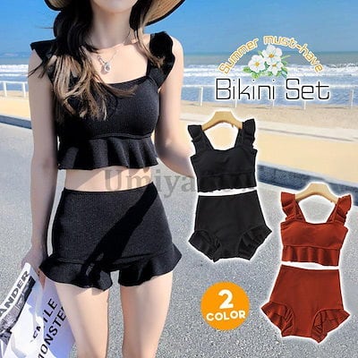 水着 レディース 体型カバー 2点セット パッド付き フレア ビキニ 上下セット 小胸 盛れる 温泉 プール 海 夏 ママ UV 紫外線対策 海水浴