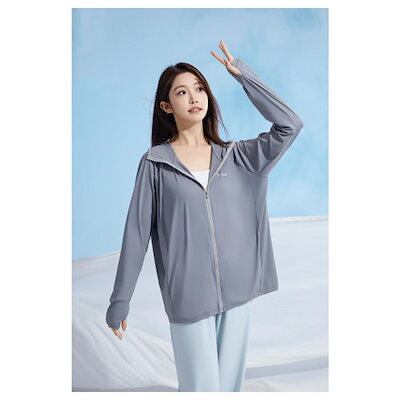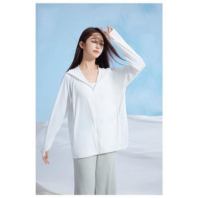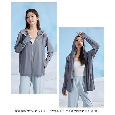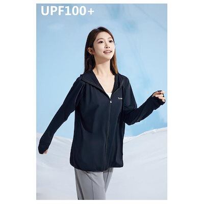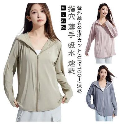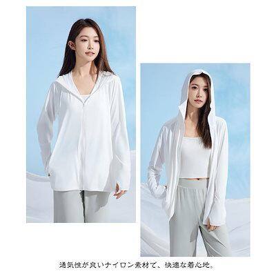 夏 指穴ジップパーカー UV 長袖 フード付き パーカー パーカー ストレッチ UVカット 水着 M レディース 女性 ハイネック 指穴 冷感 吸水