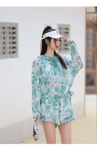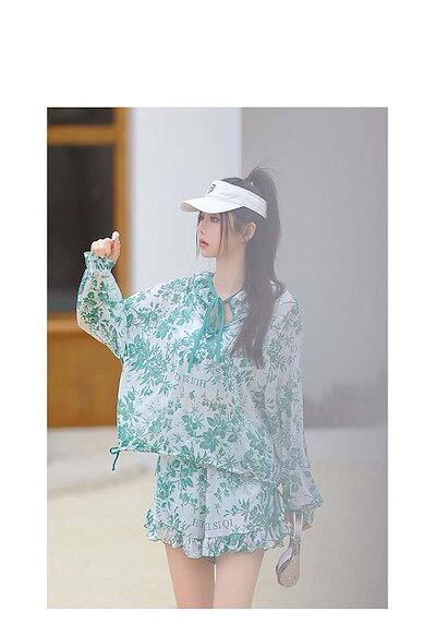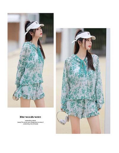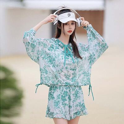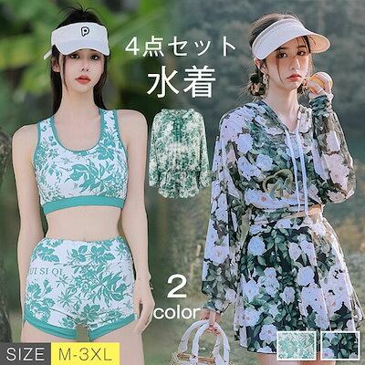 水着 レディース 体型カバー 4点セット 花柄 フィットネス 水着 おしゃれ スポーツウェア 長袖 UV カット フィット感 紫外線 カバーアップ 長袖 ショートパンツ ズボン レギンス ゴム 女性用