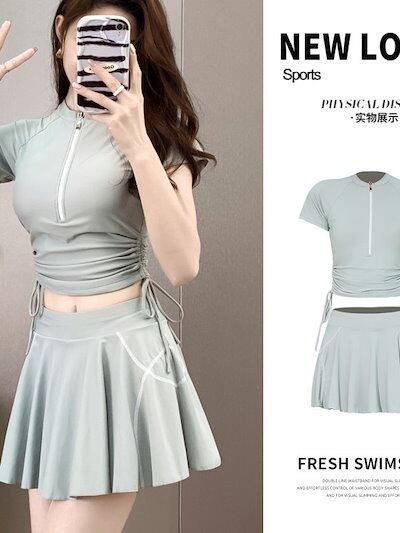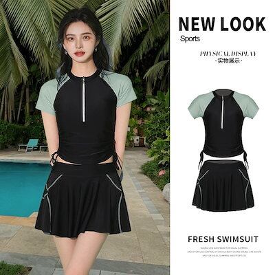 セパレートスポーツ水着 レディースブリーフスカートスタイル2点セット Tシャツ型UVカット水着