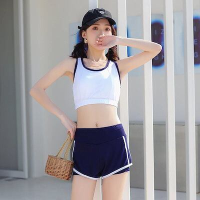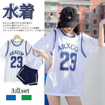 水着 レディース 3点セット ビキニ UVカット体型カバー着痩せ 韓国ファッション可愛い ゆったり Tシャツ中学生 高校生スポーツ スポーティー タンキニ ラッシュガード0