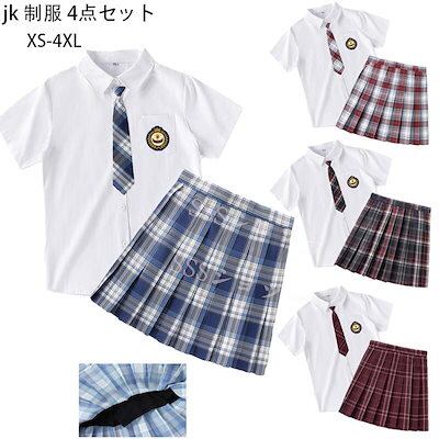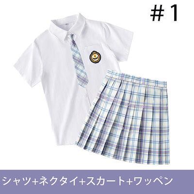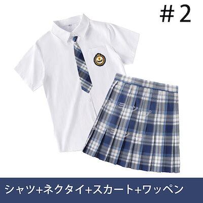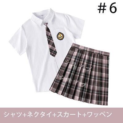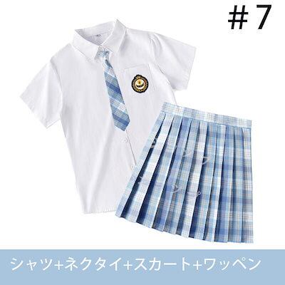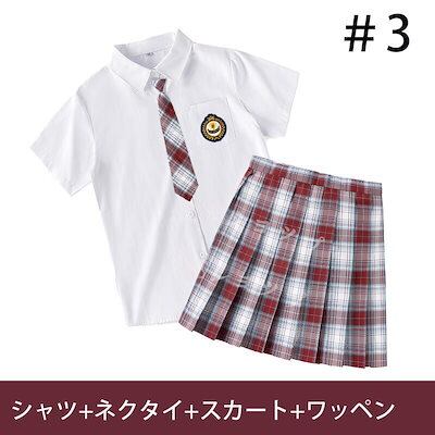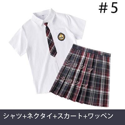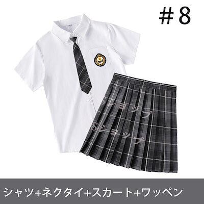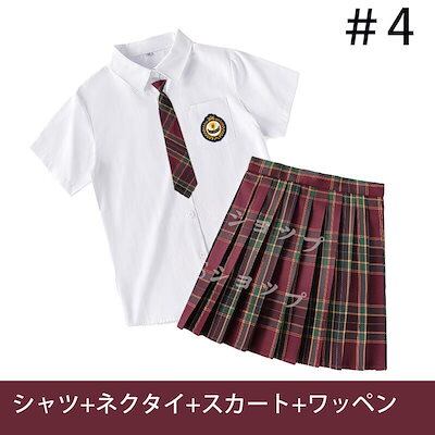 大ヒット中制服 女子高生 高校生 スカート半 袖シャツ ネクタイ ワッペン 4点セット JK コスプレ セーラー服 コスチューム コスプレ 衣装 学生 スクール ギャル ファッション レディース チエ