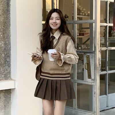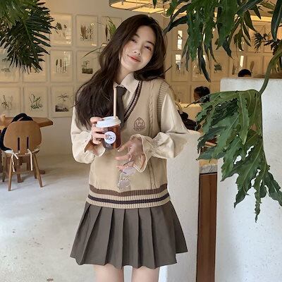 三点セット 制服 長袖 ブラウス?ノースリーブニット トップス セーラー服 ミニスカート 女子高生 高校生 学生服 文化祭 学園祭 イベント コスプレ 仮装 コスム コスプレ ベーシックニッ