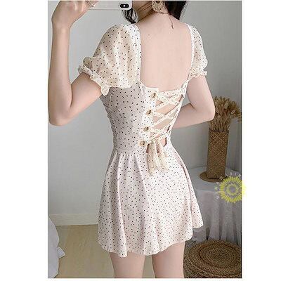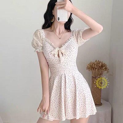 控えめ水着 レディース 体型カバー 水着ワンピース型 サロペット水着 新作 トレンド 半袖 Vネック 小胸バンドゥ 40代 オシャレ韓国風 可愛い スイムウェア ママ 夏 韓国