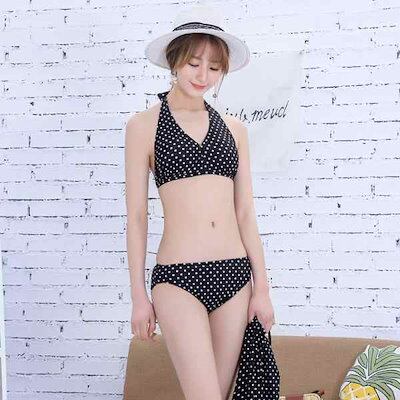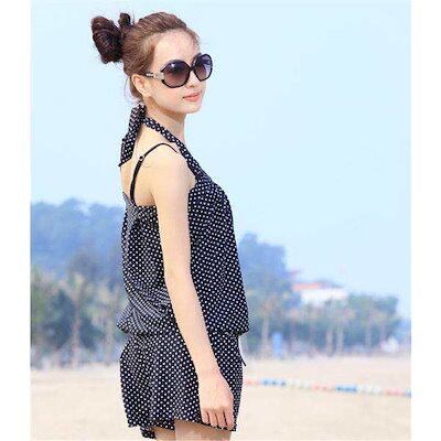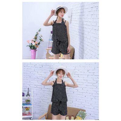 水着3点セット レディース 体型カバー 肩出し 小胸バンドゥ ビキニ サロペット ママ水着 大きいサイズ ドット柄 海水浴 温泉 みずぎ