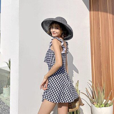 20代 50代 おしゃれ 40代 体型カバー フレア サロペット 小胸 レディース ワンピース水着 夏 30代 ママ水着 日焼け防止 水着 キレイめ 大きいサイズ バンドゥ