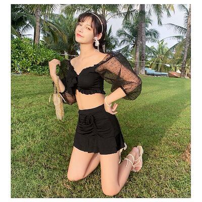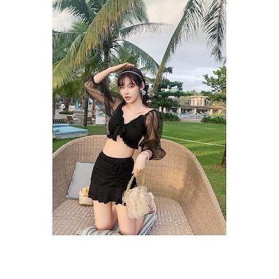 水着 レディース 2点セット 夏 小胸 バンドゥ 水着セット ビキニ パレオ 大きいサイズ リゾート パッド付き 韓国風 体型カバー 日焼け防止 20代 30代 40代 50代