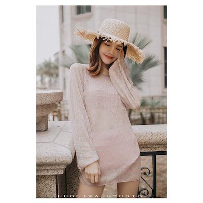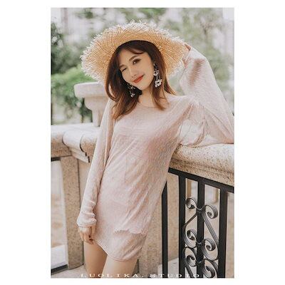 ビキニ 水着レディース 夏 ビキニ3点セット 韓国風 長袖ガウン 日焼け対策 ラッシュガード ボリューム 小胸バンドゥビキニ 40代 セクシー スイムウェア 温泉