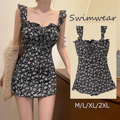 水着 レディース 体型カバー 水着ワンピース型 サロベット水着 花柄ショットパンツ 小胸バンドゥ オシャレ韓国風 着痩せ スイムウェア ママ水着 学生30%制限