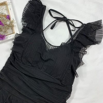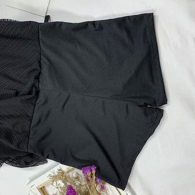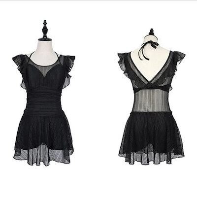 水着レディース 体型カバー 水着 ワンピース型 ショートパンツサロペット水着 黒レース フレア バンドゥ 水着 韓国風 40代 大きいサイズ セクシー ママ水着