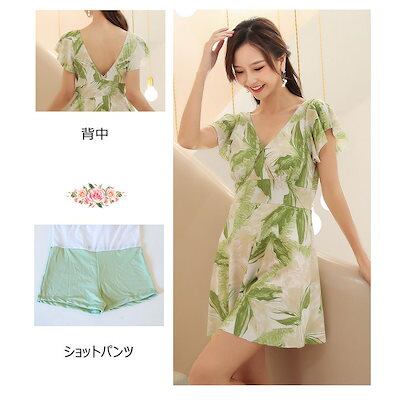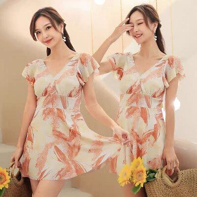 水着 レディース 体型カバー 水着ワンピース型 花柄 サロペット水着 半袖 小胸バンドゥ 40代 オシャレ韓国風 可愛い スイムウェア ママ水着 温泉 ビーチ