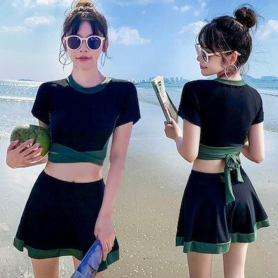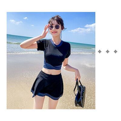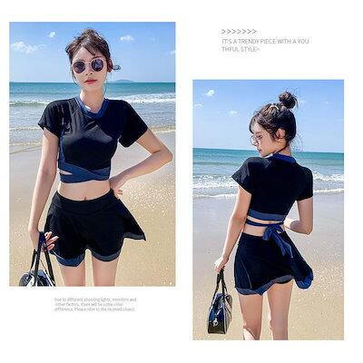水着2点セット レディース 体型カバー水着 セパレート ショットパンツ ビキニ 小胸バンドゥ 40代 オシャレ韓国風 可愛いスポーツ スイムウェア ママ水着 学生