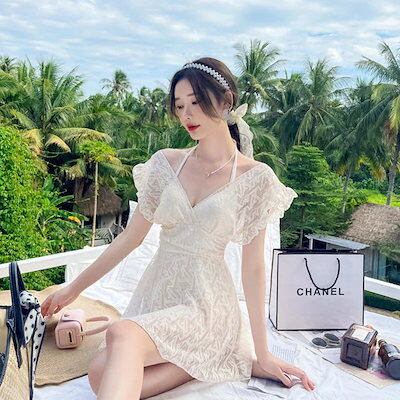 体型カバー スイムウェア オールインワン レディース 小胸バンドゥ ショットパンツ 25 着痩せ ワンピースレース UVカット 水着 ママ水着 セクシー