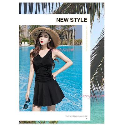 水着 レディース 体型カバー 水着 ワンピース型 ショートパンツ水着 サロベット 黒Vネック 小胸バンドゥ 水着 韓国風 40代 大人セクシー スイムウェア ママ水着