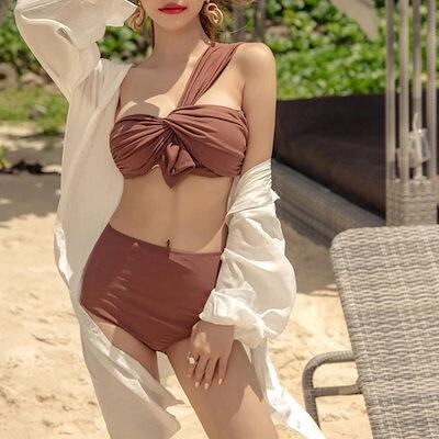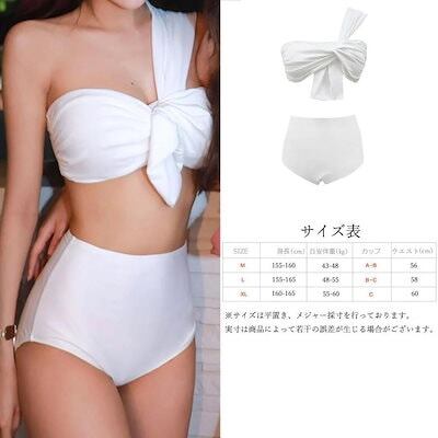 ワンショルダー 水着 2点セット セパレート 水着 レディース 体型カバー バンドゥ ビキニ ハイウエスト