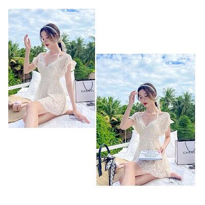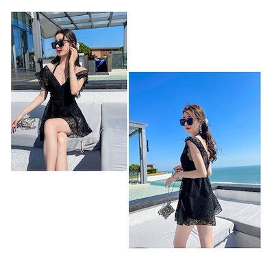 水着 レディース 体型カバー 水着ワンピース型 サロベット水着 小胸バンドゥ オシャレ韓国風 着痩
