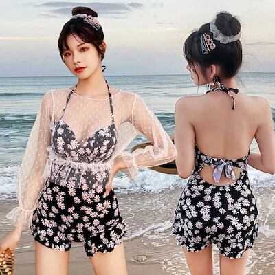 水着ィース 体型カバー 水着ワンピース型 ト水着 モノキニビキニ 小胸バンドゥオシャレ韓国風 可愛い スイムウェア