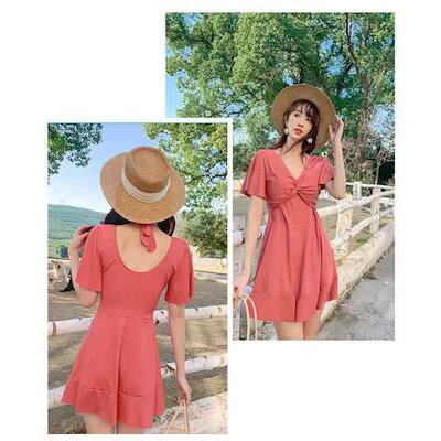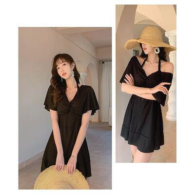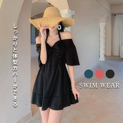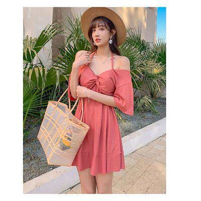 水着 レディース ワンピース 体型カバー ワンピース水着 水着 ワンピース型 肩出し 小胸バンドゥ 水着 韓国風 大きいサイズ 可愛い ウェア 温泉