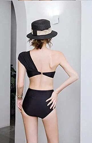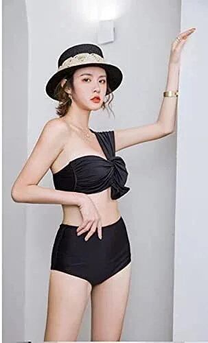 ワンショルダー 水着 2点セット ビキニ 水着 セパレート 水着 レディース 体型カバー バンドゥ ビキニ ハイウエスト 盛れる リゾート リボン セクシー オトナ 二の腕 お腹
