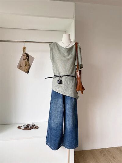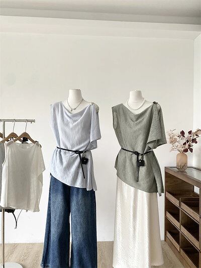激安セール 不規則アッパー 夏装 Tシャツ ベルト付き ウエストリフォーム可能