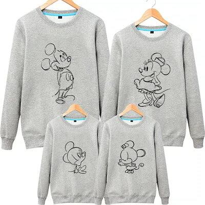 新品秋冬新作 7 親子ペア親子ペアルック ディズニー ミッキーマウストレーナー 韓国ファッション カップル出荷が早い Tシャツ カットソー