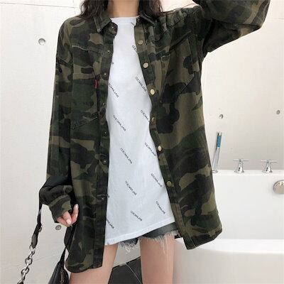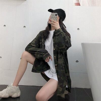 無料限定 新品 大人気 新しいシャツ レディース 迷彩柄 トップス 長袖 襟付き 迷彩シャツ ロング ジャケット薄手 秋 カモフラ Tシャツ カットソー