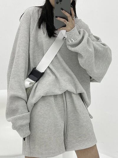 ワフグスポーツスーツ半袖Tシャツ女性純色カジュアルワイドパンツゆったり夏薄型カーディガンファッション